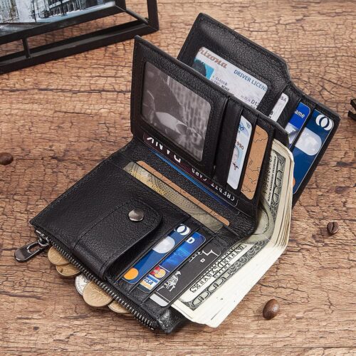 Realizzato con un design retrò e disponibile in nero o marrone, il portafoglio è adatto ad ogni occasione e stile.